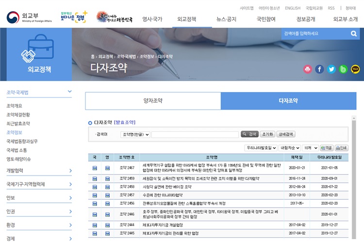 한편, 한국에서는 어떻게 조약을 찾아볼 수 있을까? 외교부 홈페이지(mofa.go.kr)도 가보자. 조약은 외교부 홈페이지의 외교정책> 조약․국제법> 조약정보에서 찾아볼 수 있다. 그러나 여성 인권 관련 보고서도, 여성 인권 관련 선언에 관한 번역도 너무나 적다.