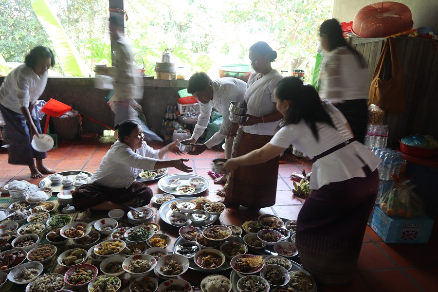 4. 한국의 추석과 비슷한 명절로 캄보디아에는 “프춤번”이 있습니다. 조금 다른 점은 추석이 음력 8월 15일이라면, 프춤번은 음력 8월16일부터 29일까지입니다. 이 때 지옥 문이 열리고, 조상님들이 밥을 먹기 위해 찾아온다고 합니다. 캄보디아 사람들은 자신들의 7대 조상들을 기리며, 일곱 군데의 절에 찾아가서 조상님들을 위한 음식을 공양합니다. 이 많은 음식은 사람들이 정성 들여 준비하여 절에 공양한 음식입니다.