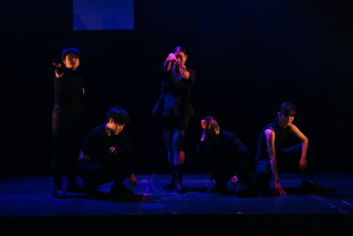 ![]() ▲ 극단 Y의 연극 <퍽킹젠더>(강윤지 연출, 2020)에서 공연 중인 이누와 팀 노댄스(NoDance). (한국문화예술위원회 제공) |