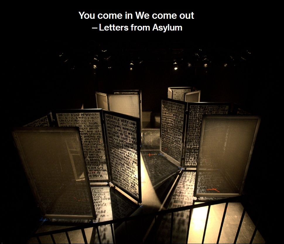 <유 컴 인, 위 컴 아웃-레터스 프롬 어사일럼>(You come in, we come out-letters from asylum)은 특히 ‘공간’이 중요한 전시이기도 하다. 제목에서 드러나듯 이 전시는 ‘어사일럼에서 온 편지’다. “어사일럼은 ‘망명’ 또는 ‘정신병원’이라는 의미를 가졌으며, ‘망명’의 의미로 쓰일 때는 피난처, ‘정신병원’이라는 의미로 쓰일 때는 가두는 공간으로 각각 다르게 해석할 수 있다”고 작가는 설명한다. 이 전시는 “제람이 13년 전 군 복무 중 동성애자라는 이유로 군 정신병원에 116일간 갇혔던 자신의 경험을 포함하여, 여섯 명의 동성애자 군인의 이야기를 편지의 형식으로 표현한 작업”이다.