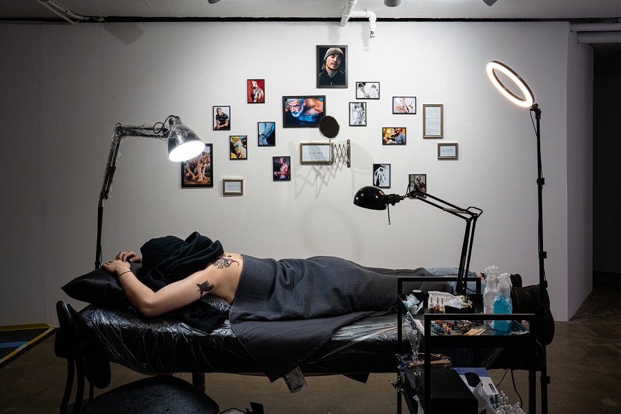 이번 전시에서 그는 수염을 갖고 싶어 성형외과를 전전하고, 문신으로 뒤덮인 몸을 기대하며 문신사의 침대에 눕는다. 수염과 문신이 있는 신체 이미지들, 그것이 내포하는 어떤 사회적 기호만이 오직 그가 미래를 가늠할 수 있는 최소한의 단서다. ‘여성’이라는 성별정체성과 ‘동성애’ 라는 성적 지향으로부터 안정적인 자기서사를 구축하던 그에게 이제 ‘여성’은 불화와 의심의 대상이 되었다. ‘퀴어’라는 단어의 의미는 작가의 거듭되는 질문 속에서 자꾸만 자리를 옮겨 다닌다. 그는 다시 ‘퀴어미래’를 상상할 수 있을까?